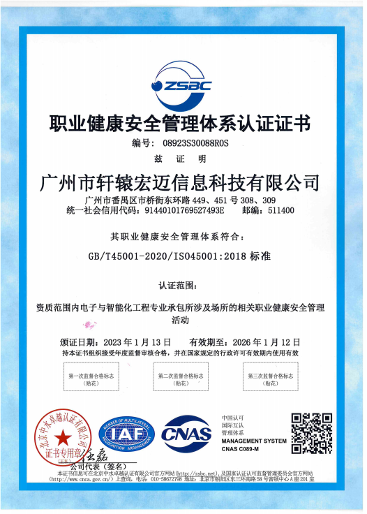 職業健康安全管理體系認證證書