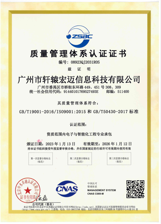 質量管理體系認證證書